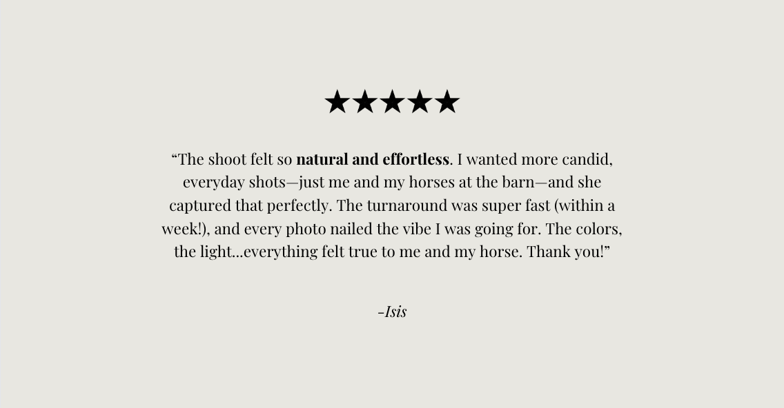 I understand being in front of the camera can feel intimidating. That’s why I bring over a decade of experience as a published photojournalistic and brand photographer to offer a refreshing photoshoot experience designed specifically for riders who’d rather be in the saddle than in front of the lens.