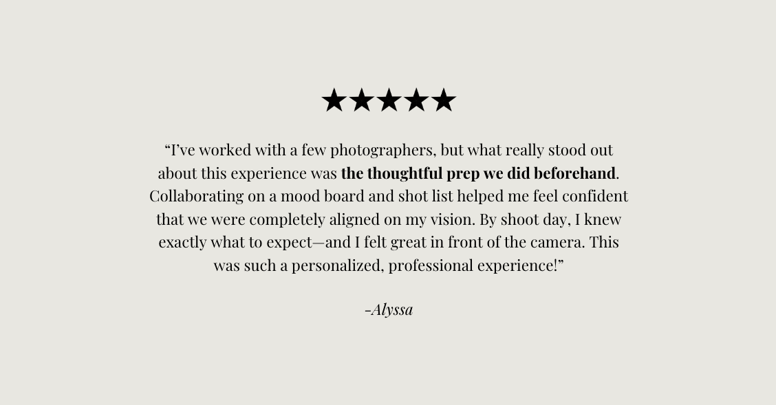 Reach out to schedule a quick call where we’ll outline your custom package and plan a seamless experience that delivers share-worthy photos you’ll love.